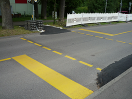 Provisorische Fahrbahnmarkierung (Folie/Kaltplastik) Linienmarkierung, Strichmarkierung, Pfeile, Piktogramme, Haltebalken